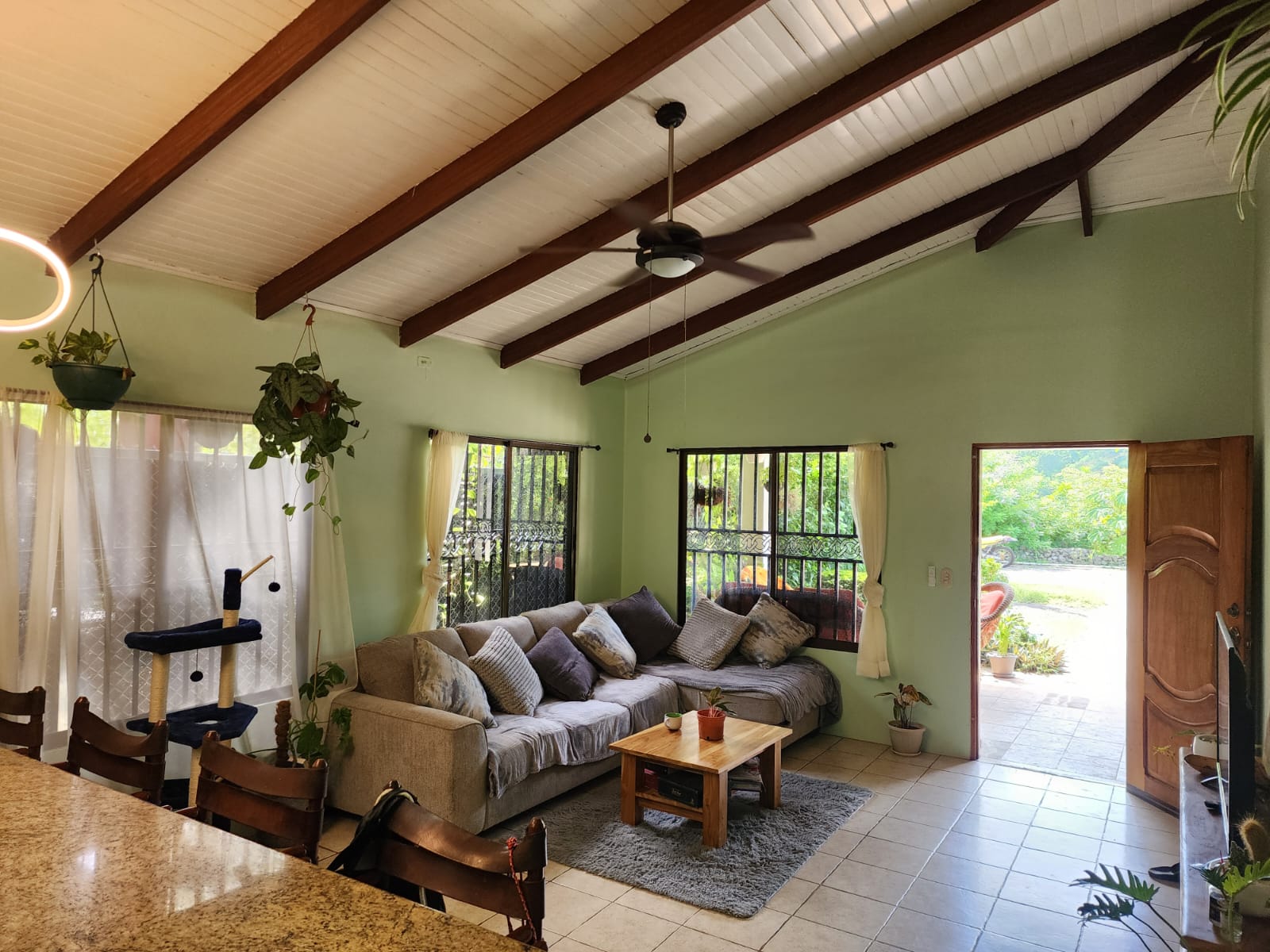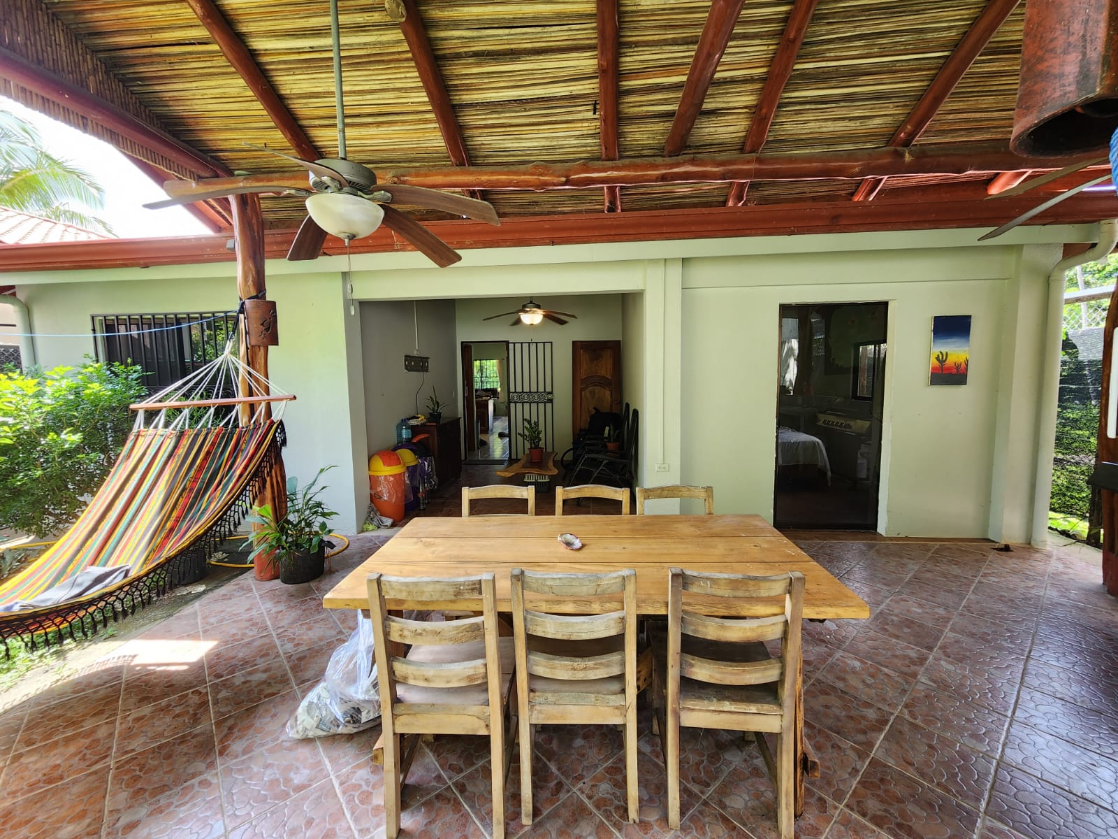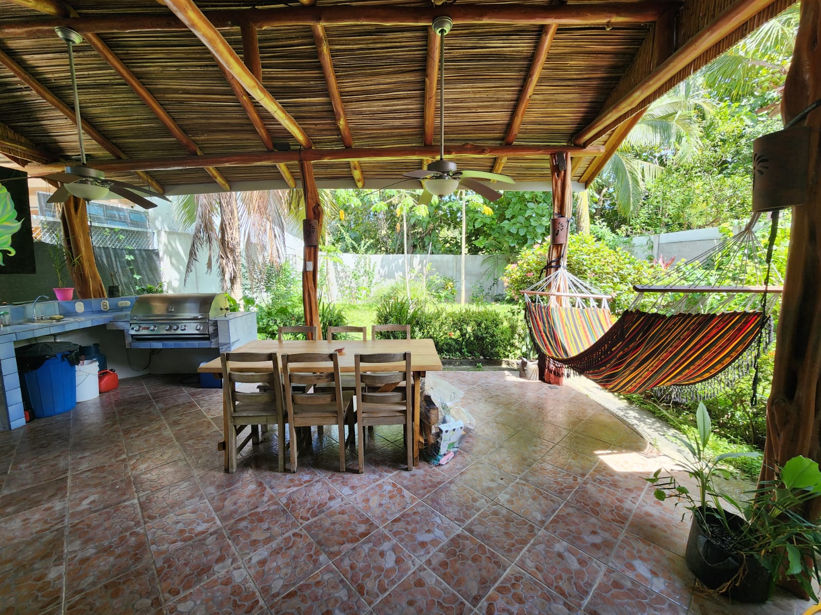 Casa Mariposa is a fully furnished beautiful home located only a short 4-minutes’ drive to Playa Samara, perfect for a full-time resident or as a vacation rental. It has three spacious bedrooms and two bathrooms complete with exotic Costa Rican Guanacaste counters, and granite sinks. All bedrooms have AC and gorgeous hardwood furniture locally handcrafted. The kitchen is totally equipped and has Guanacaste cabinets, granite counter tops, and plenty of storage space. The large open patio with BBQ area offers the perfect place to entertain or for private relaxation. The home is located on a quiet street and has a fully fenced backyard with plenty of garden space.