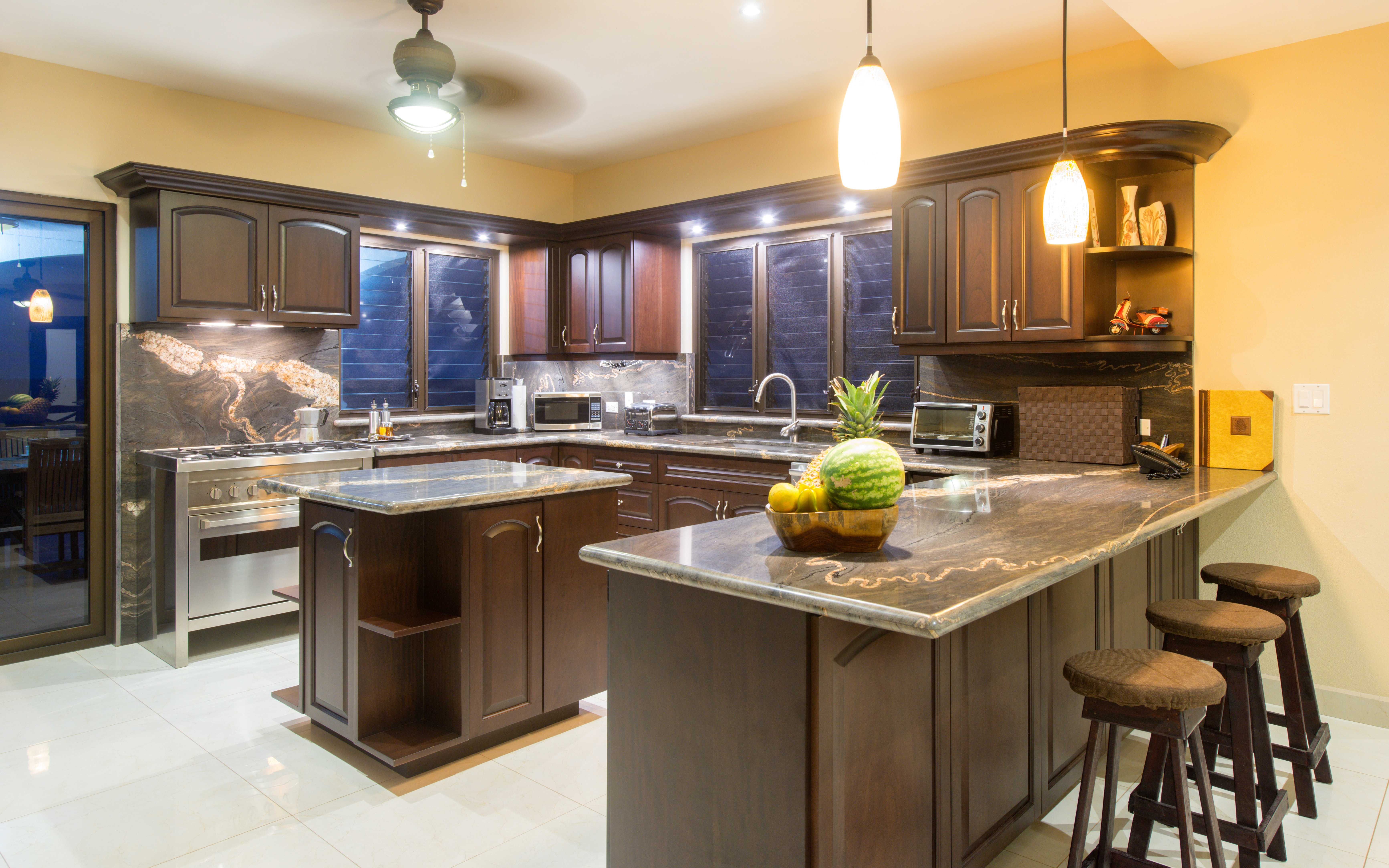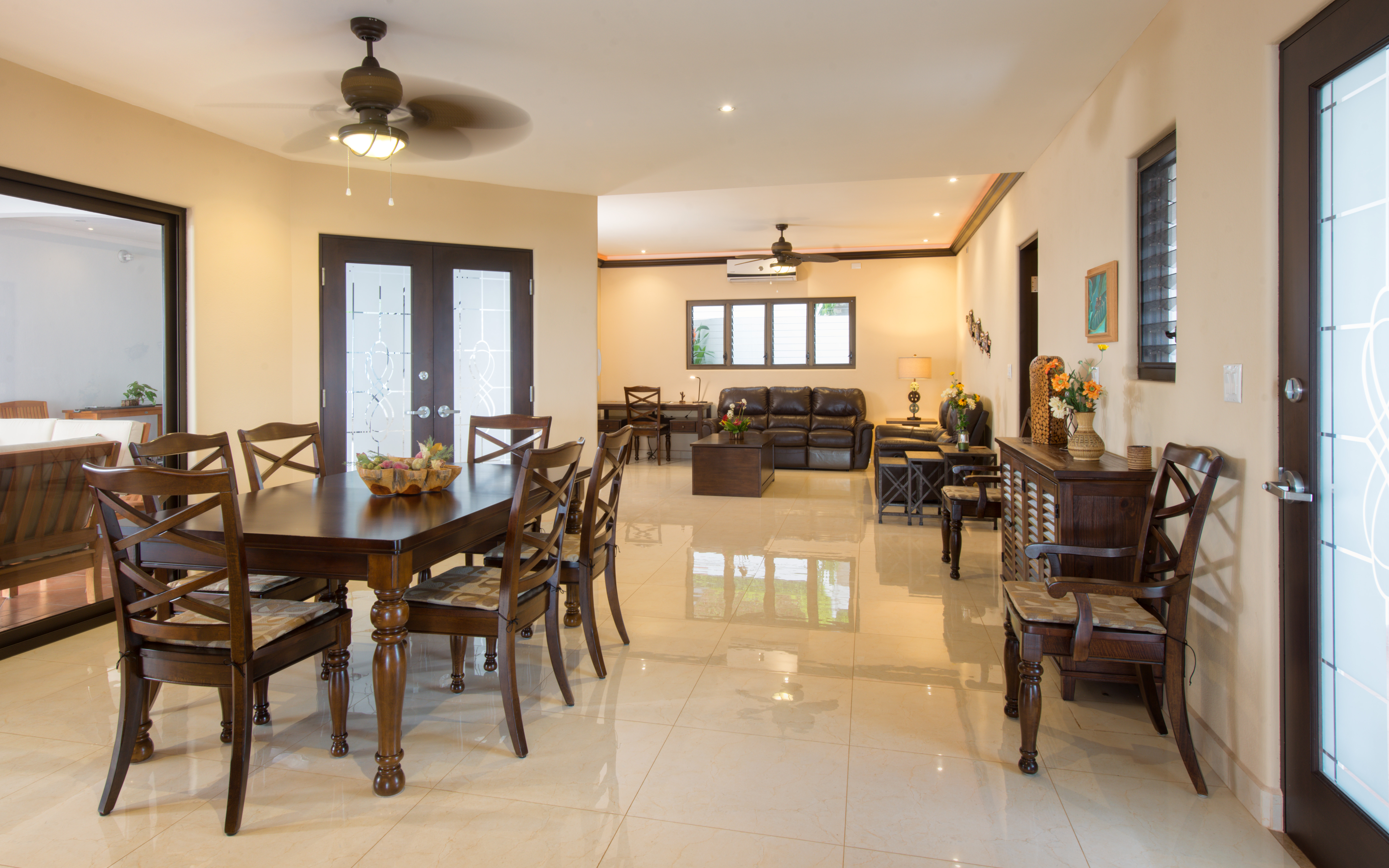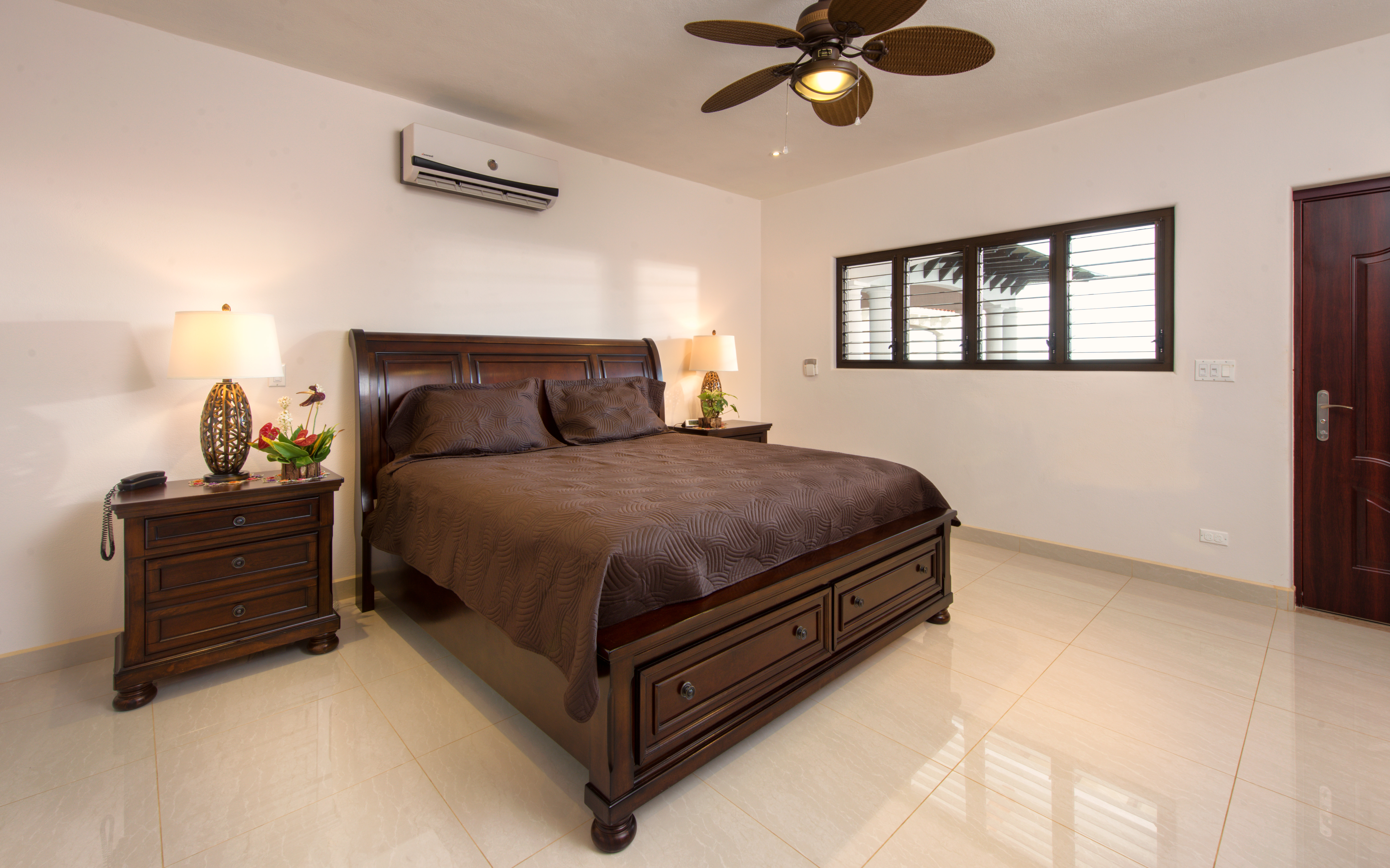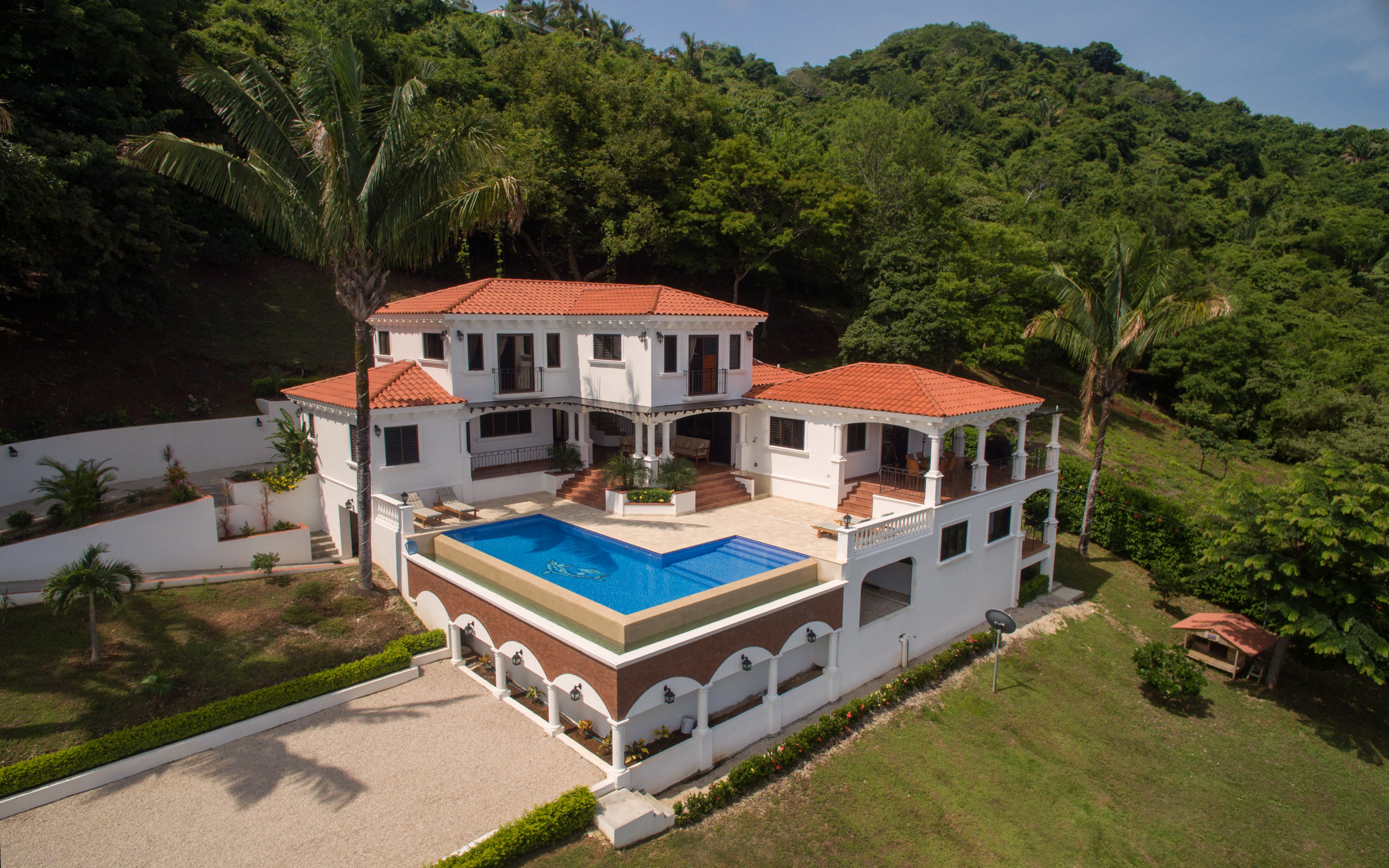 The executive chef’s kitchen and family room opens to an expansive covered patio and infinity pool as the cool ocean breezes flow right through the home. This home measures over 4200 square feet complete with 3 upstairs bedrooms where you will awaken to glorious views of the ocean each morning, you are hereby forewarned, your guests will not want to leave! The 4 bedrooms feature en suit bathrooms and walk in closets, with an additional caretakers quarters which features of a fully furnished apartment. It is tastefully furnished and equipped for your immediate use and enjoyment.